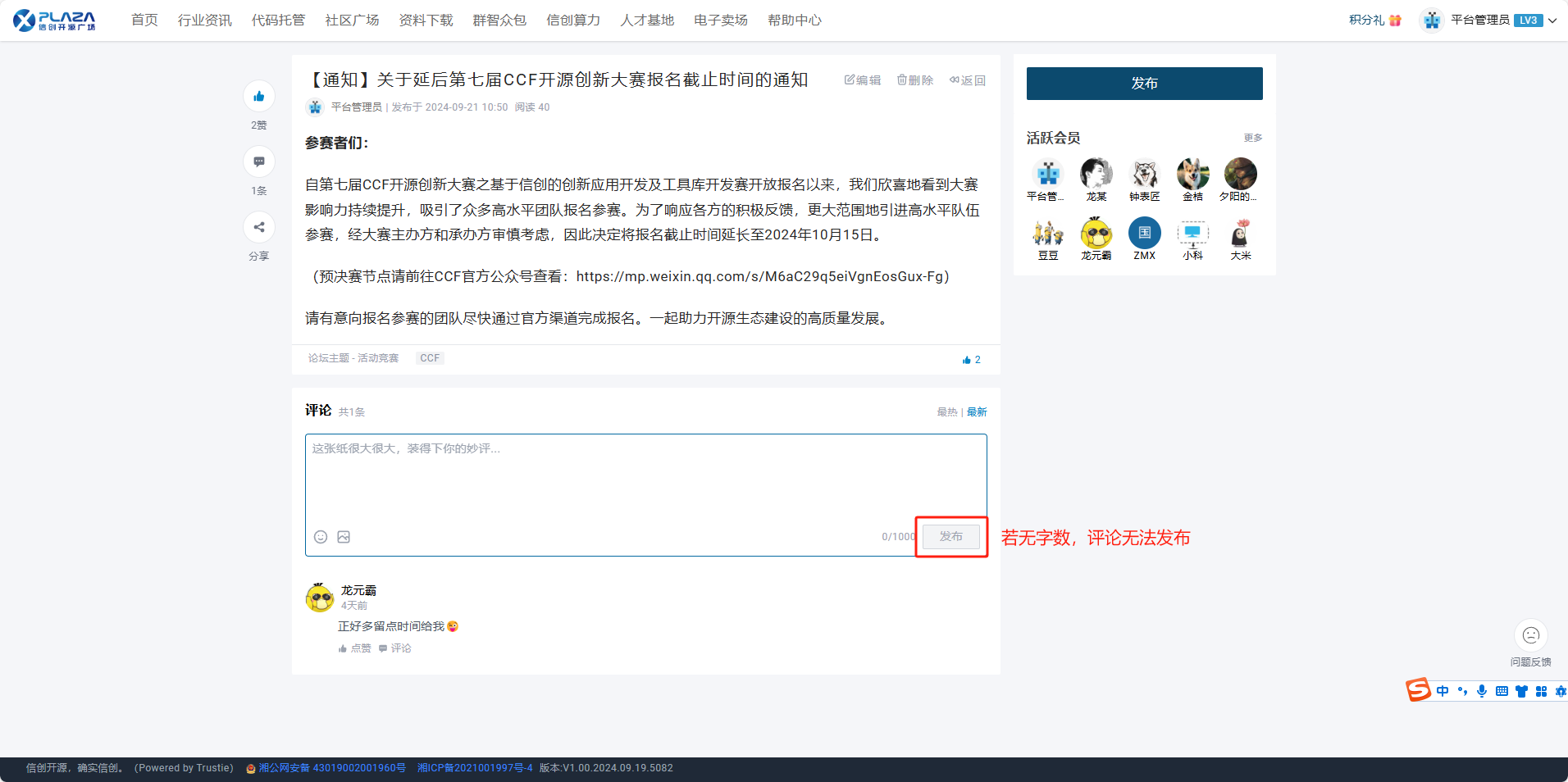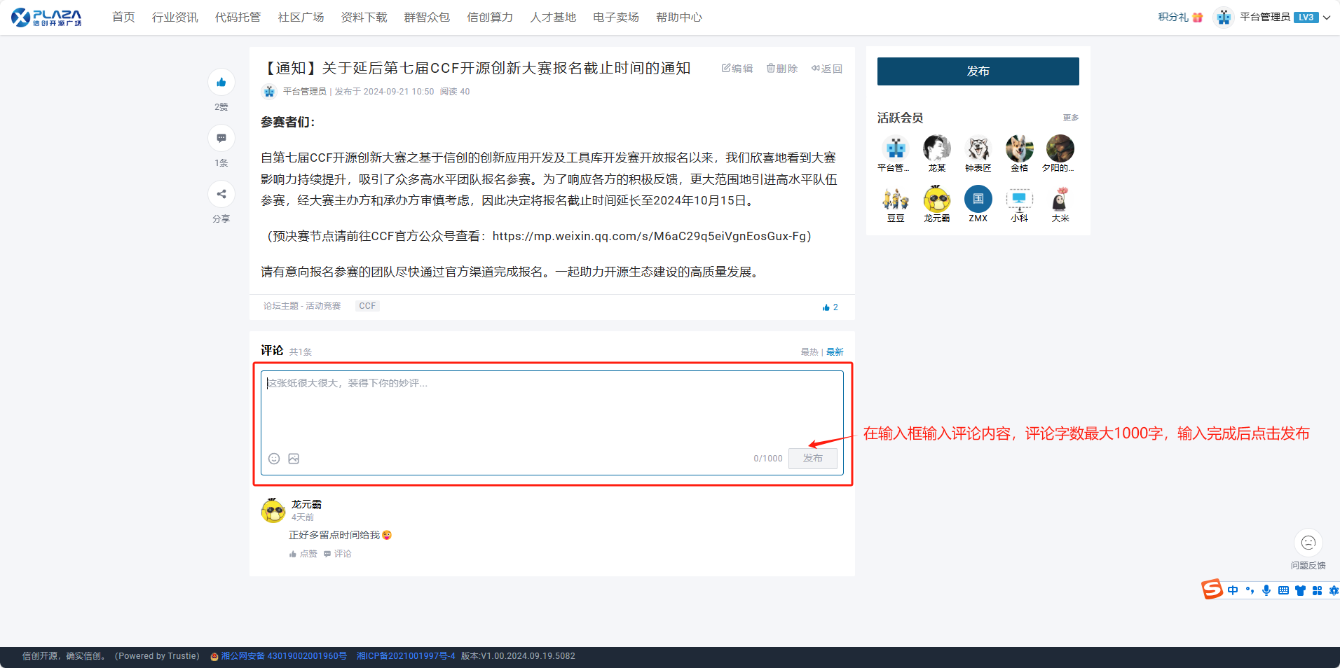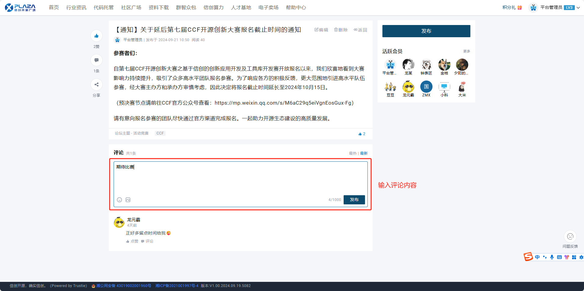 提交评论功能是平台允许用户在平台上发表自己的意见、建议和评论的功能。用户可以使用该功能来表达对新闻、文章、产品或服务的看法,从而与其他用户进行交流和互动。下面描述操作流程。