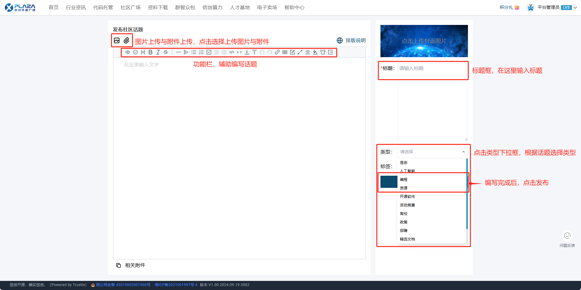 发布新话题功能是平台允许用户在平台上创建新的讨论主题的功能。用户可以使用该功能来发起关于某个话题的讨论,从而与其他用户进行交流和互动。发出见解下面描述操作流程。