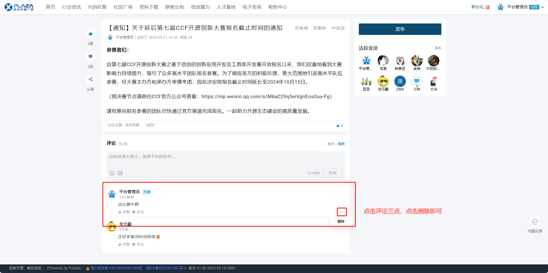 提交评论删除功能是平台允许用户在平台上删除自己发布的评论的功能。用户可以使用该功能来删除不再需要的评论或者错误的评论,从而保持评论区的整洁和准确性。下面描述操作流程。