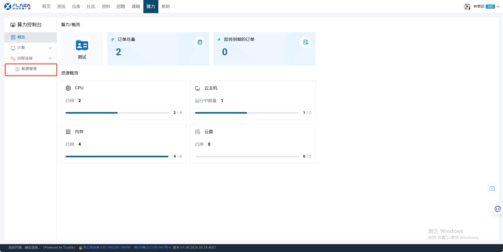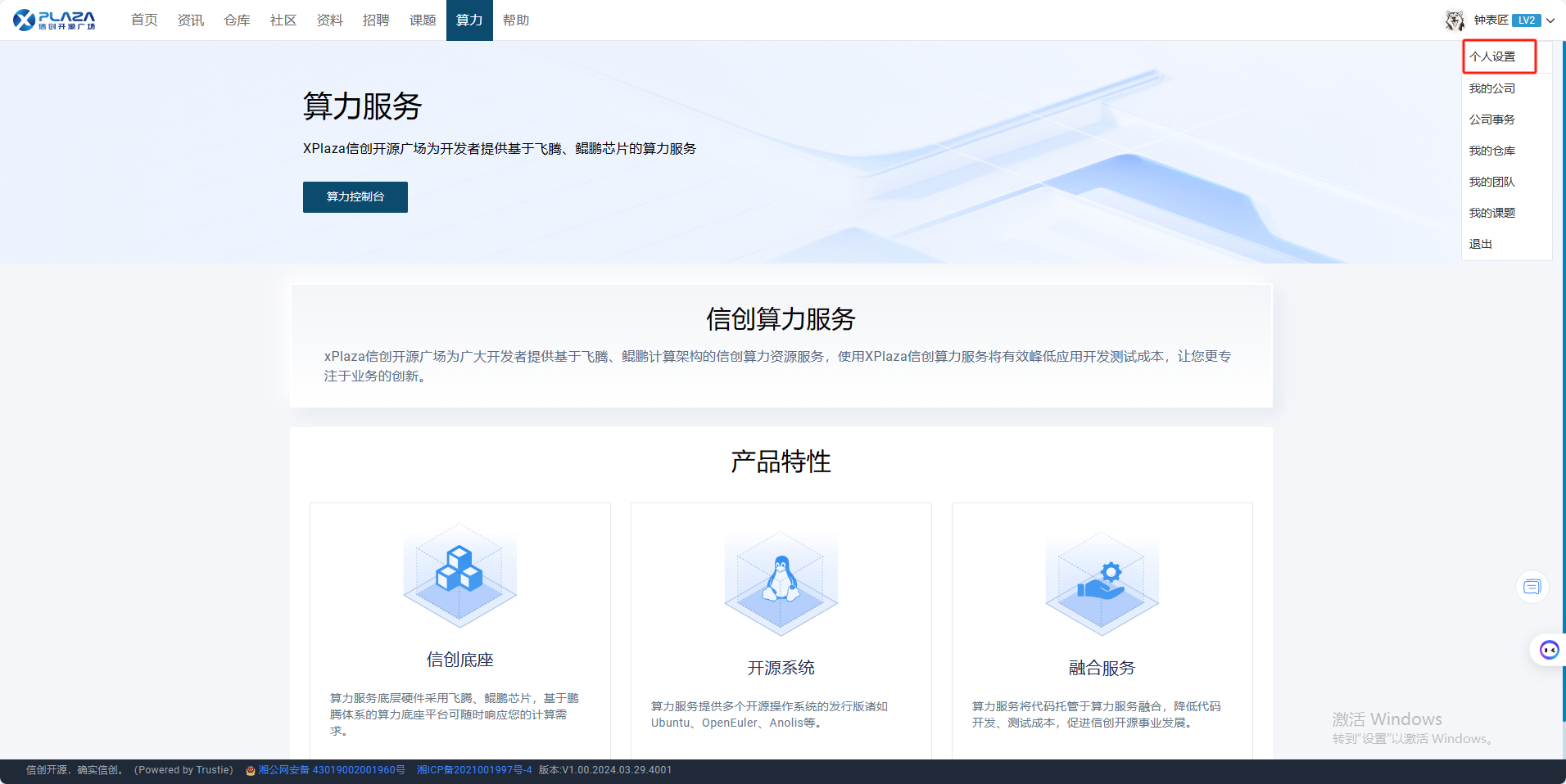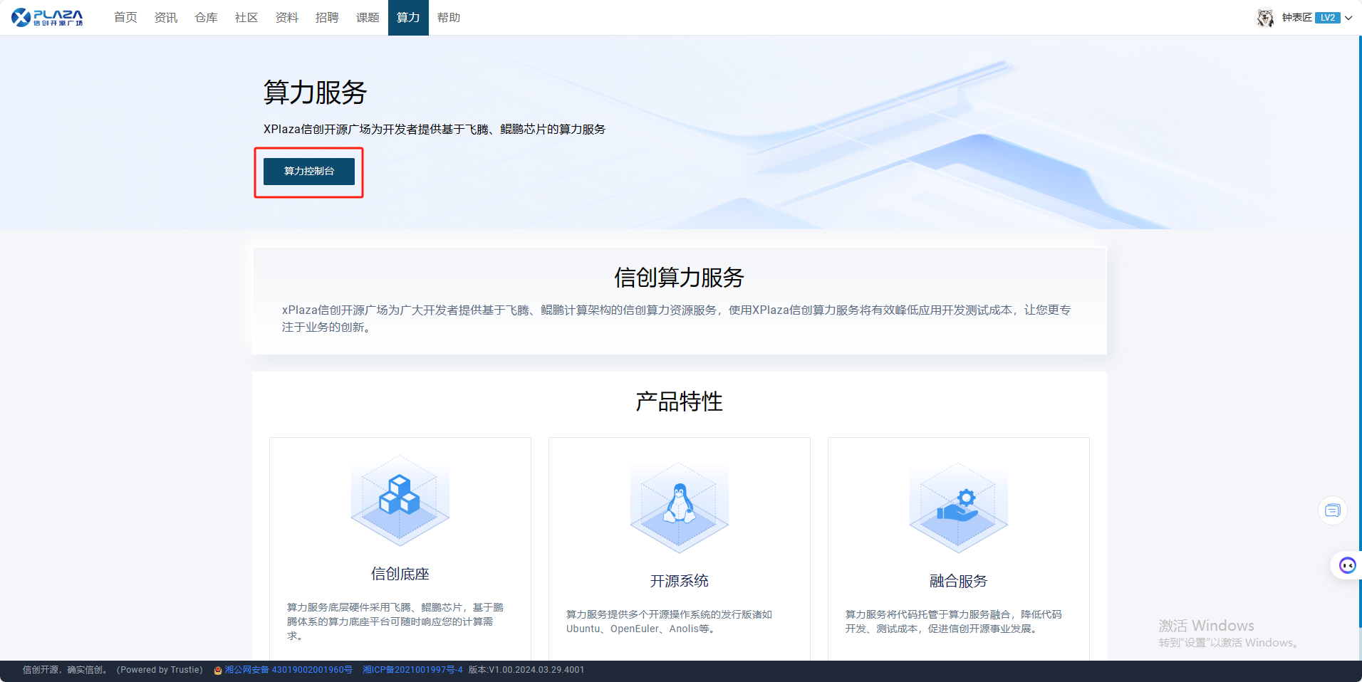 1.用户【实名认证】后点击【算力】,点击【算力控制台】,进入算力控制台页面。