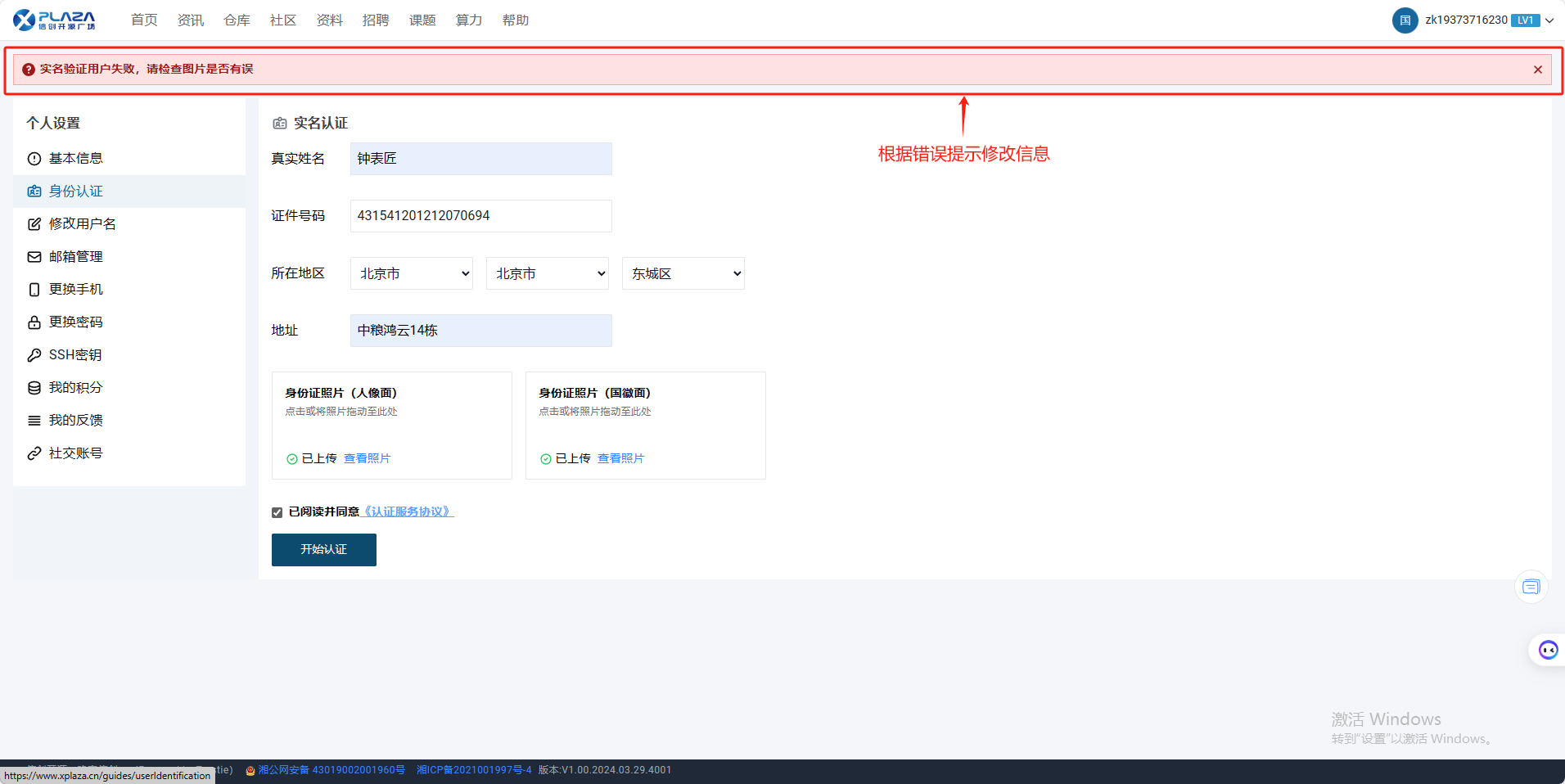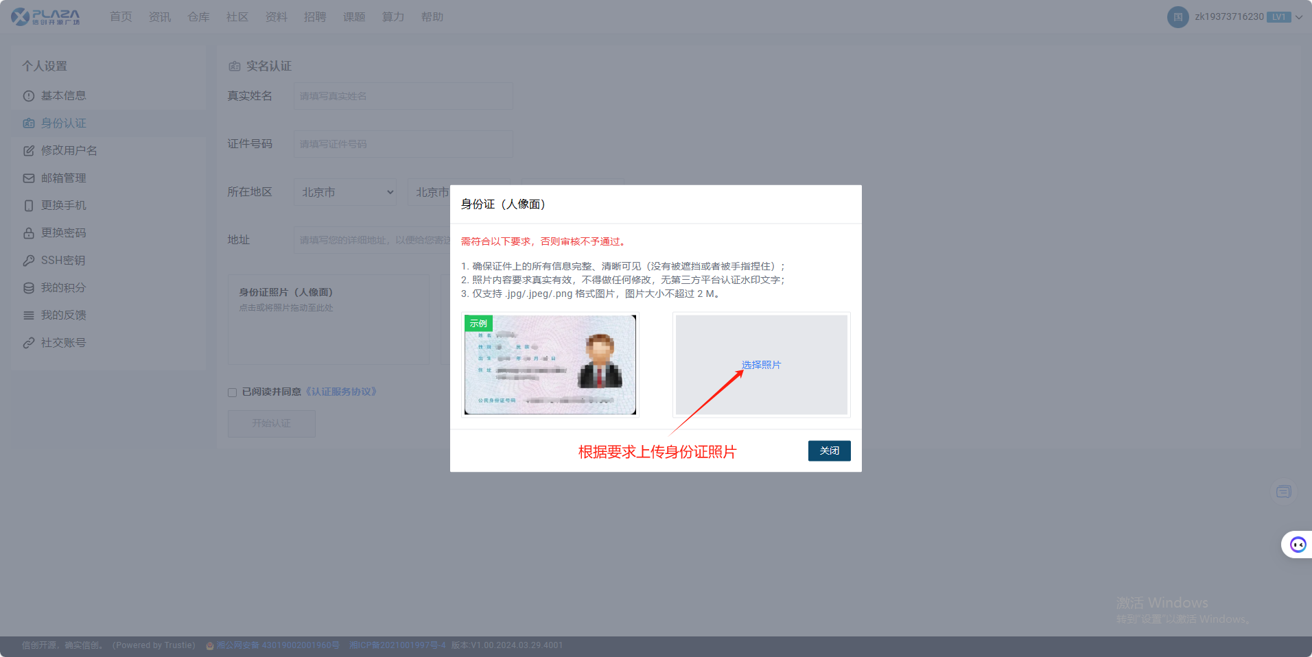3.填写实名认证信息,上传身份证照片。