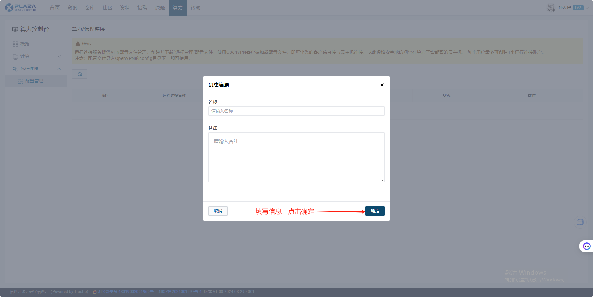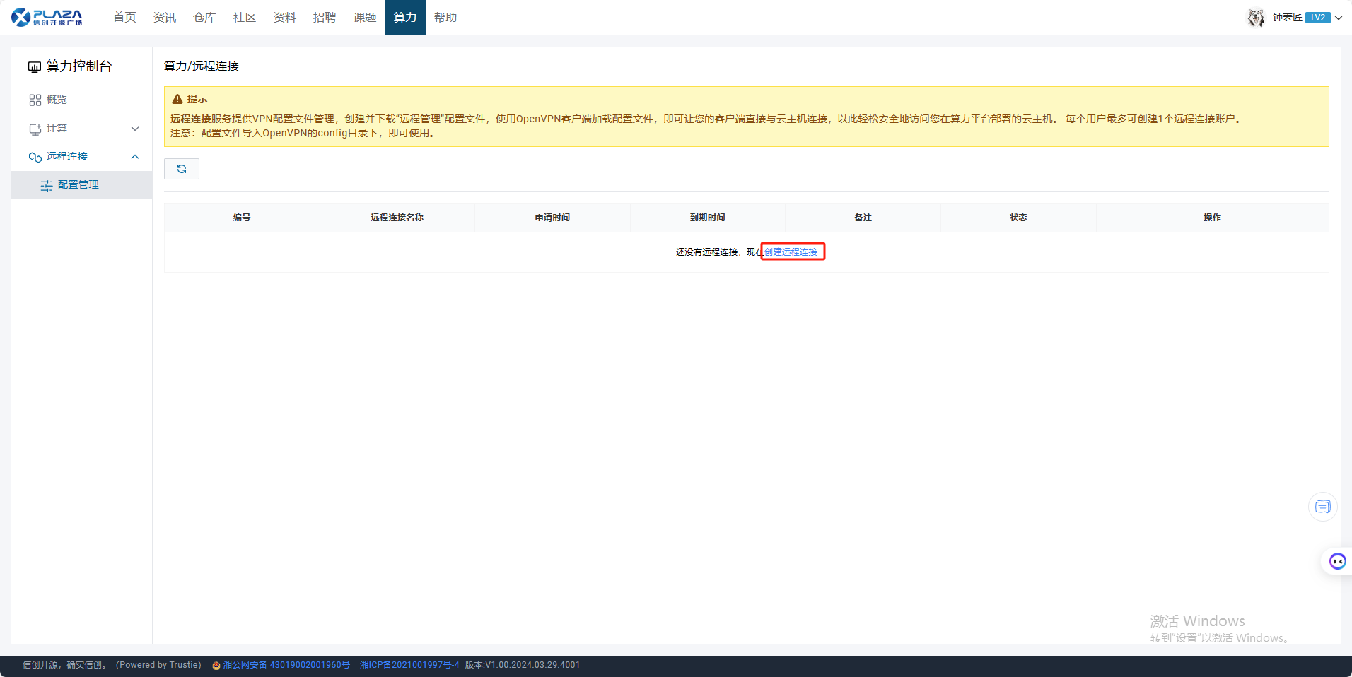 1.用户进入算力控制台页面,点击【远程连接】,点击【配置管理】。
