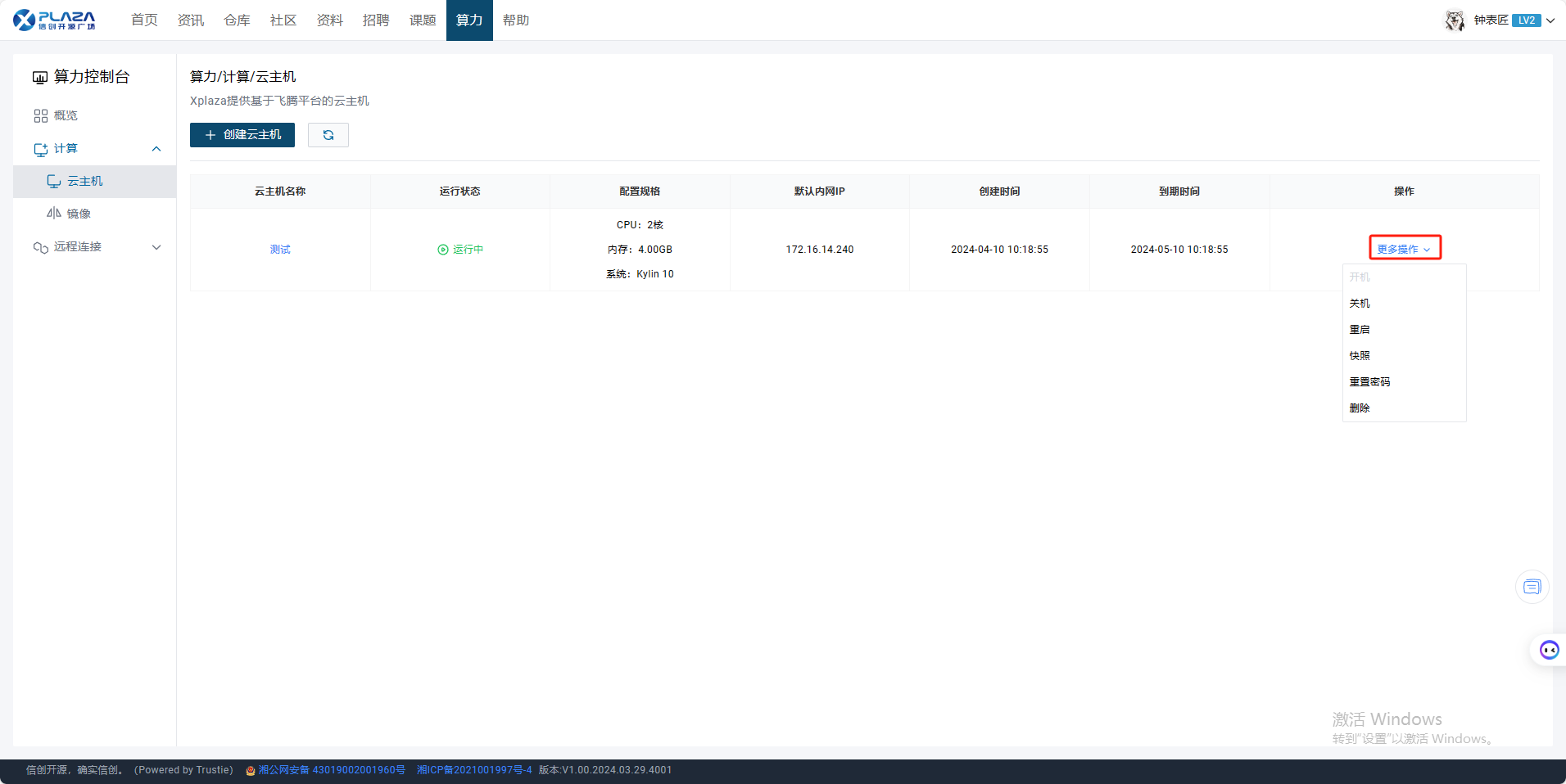 操作云主机功能是算力控制台提供的一项服务,允许用户对已创建的云主机实例进行管理和控制。通过这项功能,用户可以执行各种操作,如启动、停止、重启云主机,重置密码,以及删除云主机。下面描述该功能操作流程。
