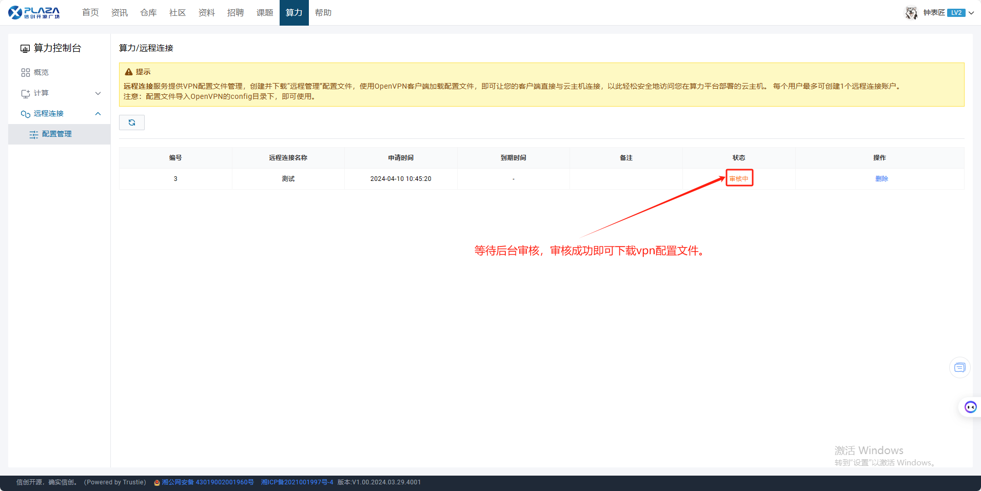 4.等待后台审核,下载配置文件。