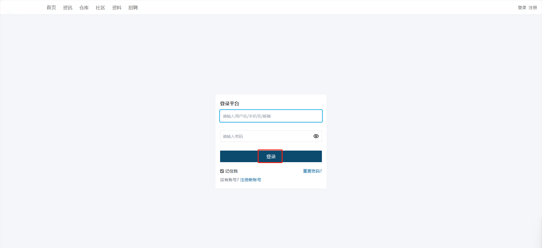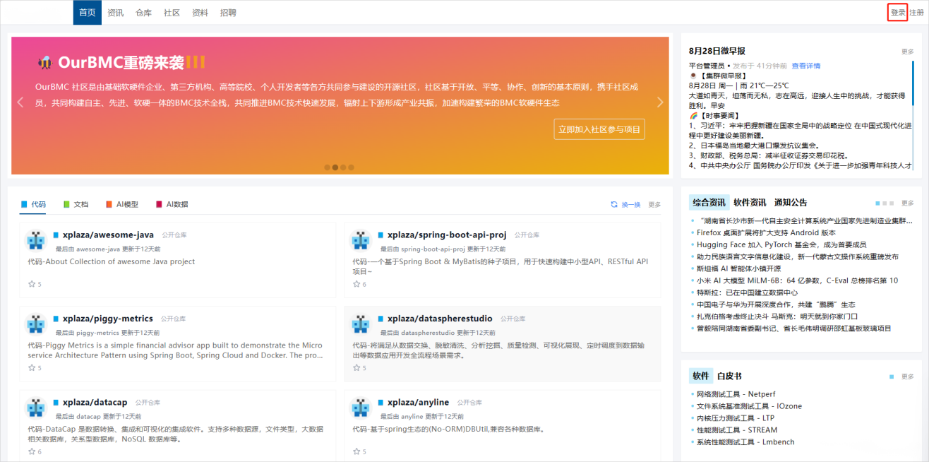 - 用户进入系统首页,点击右上角【登录】。