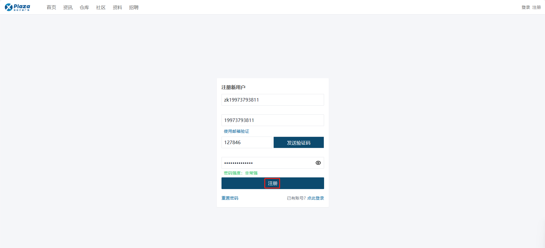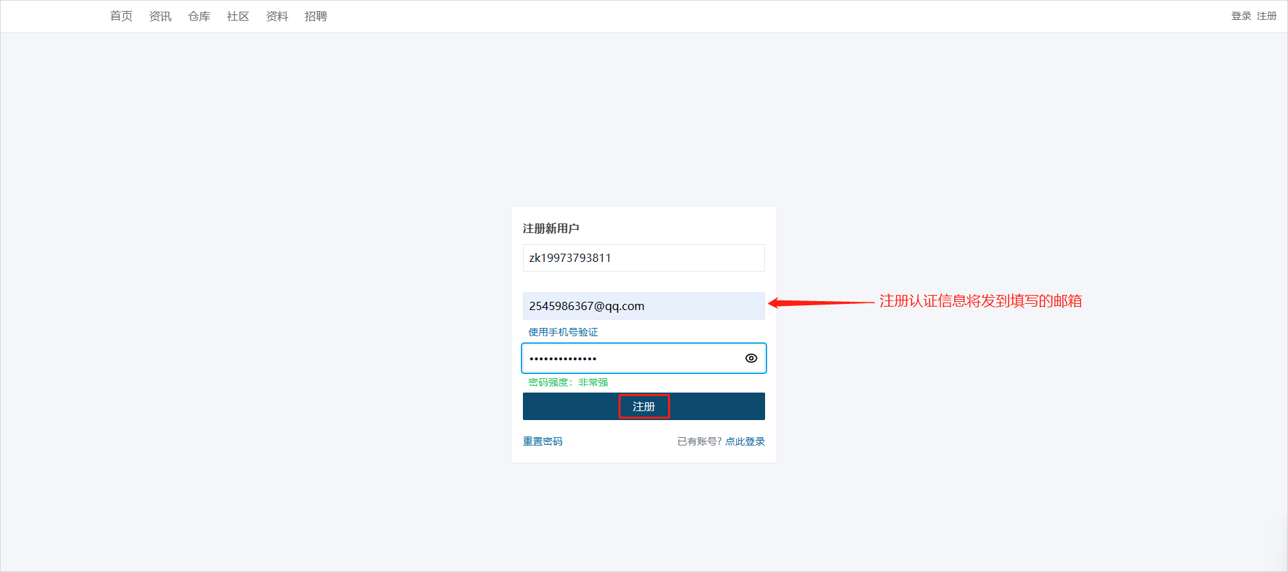 - 输入注册信息,点击【注册】。