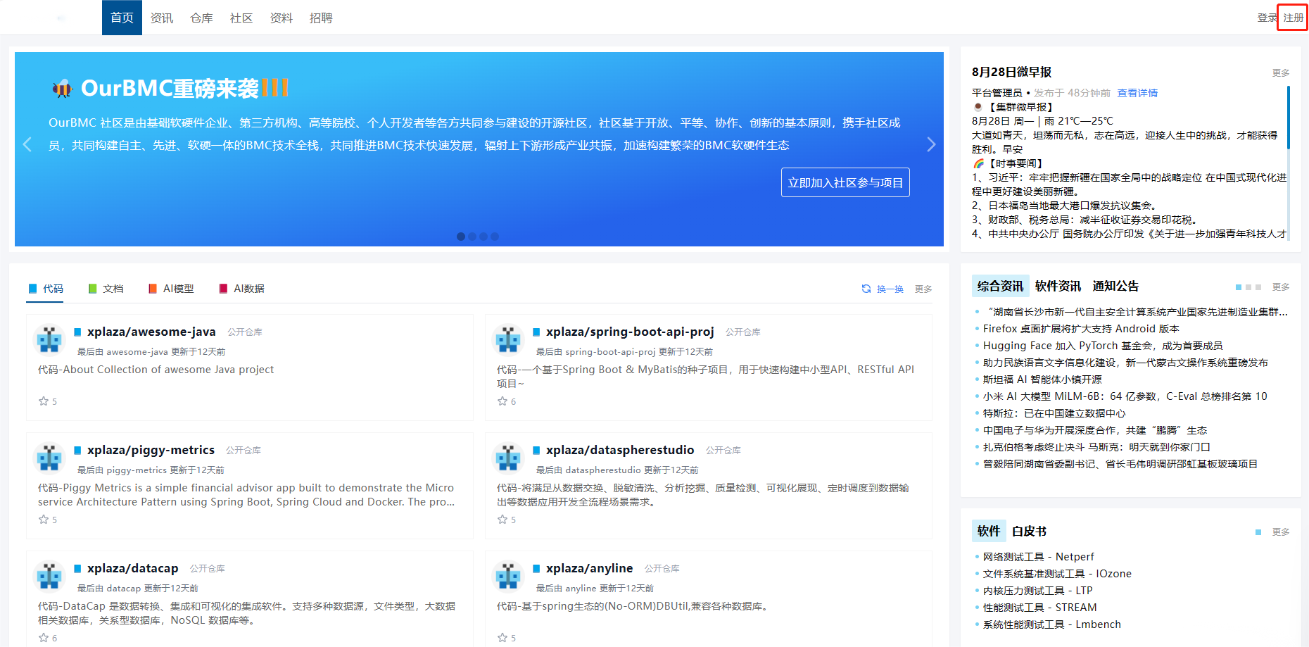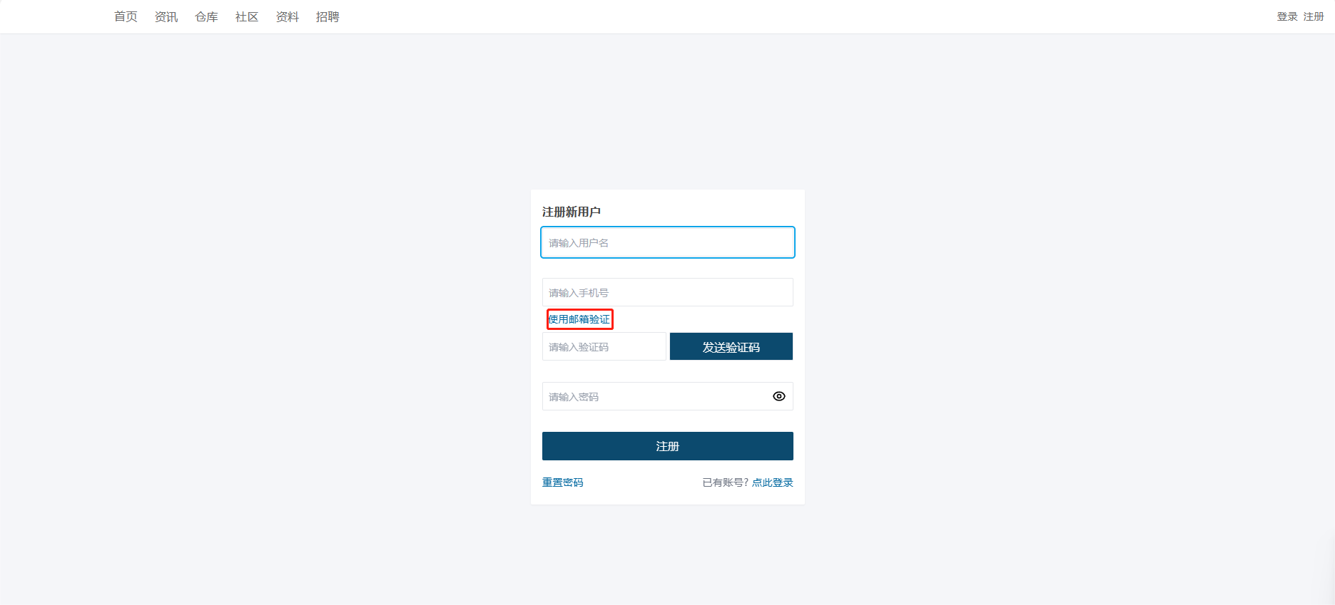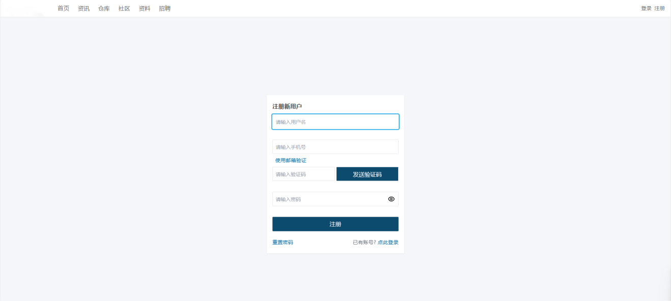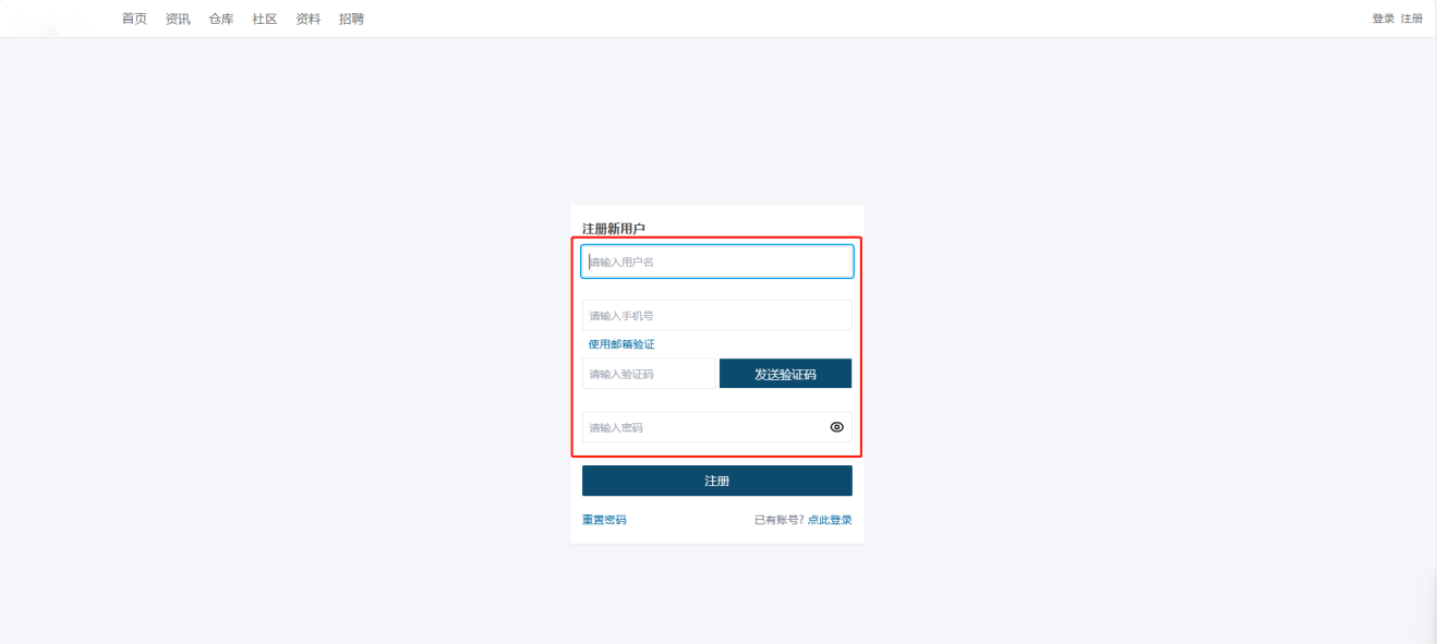 - 用户进入系统首页,点击右上角【注册】。