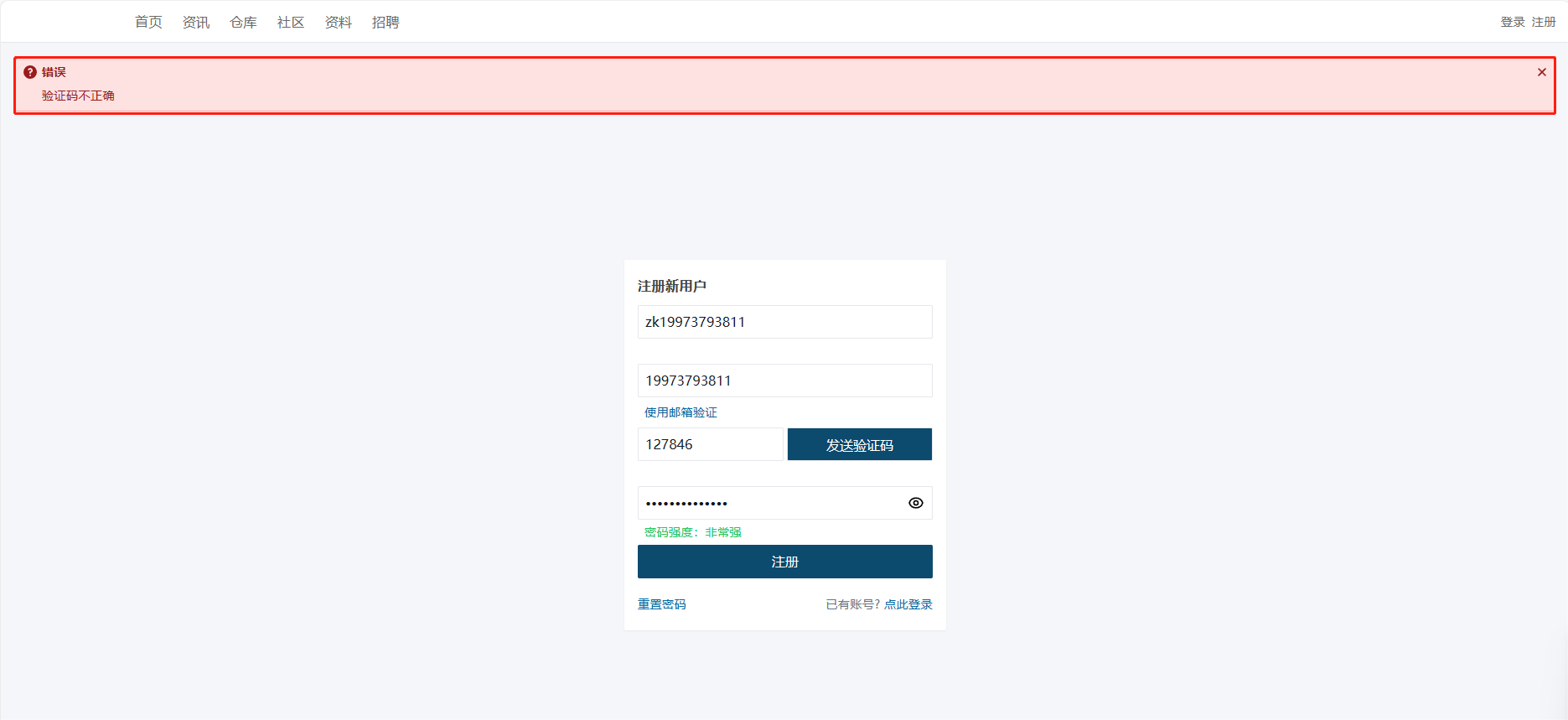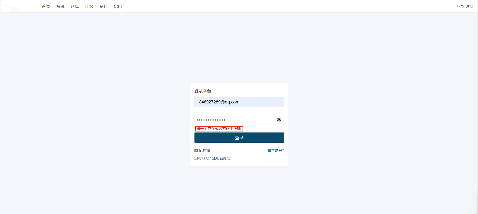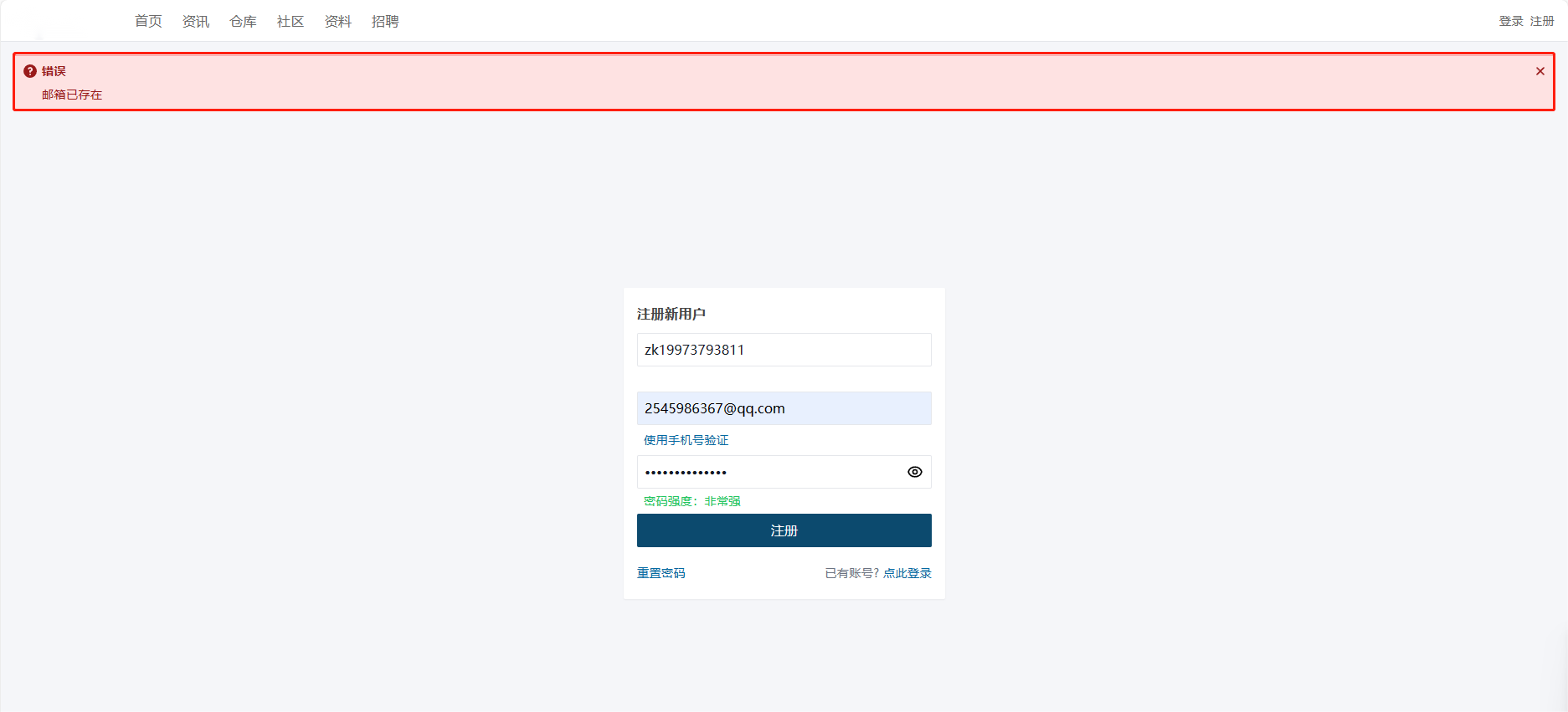 - 若邮箱不存在或与已被注册,提示错误信息。