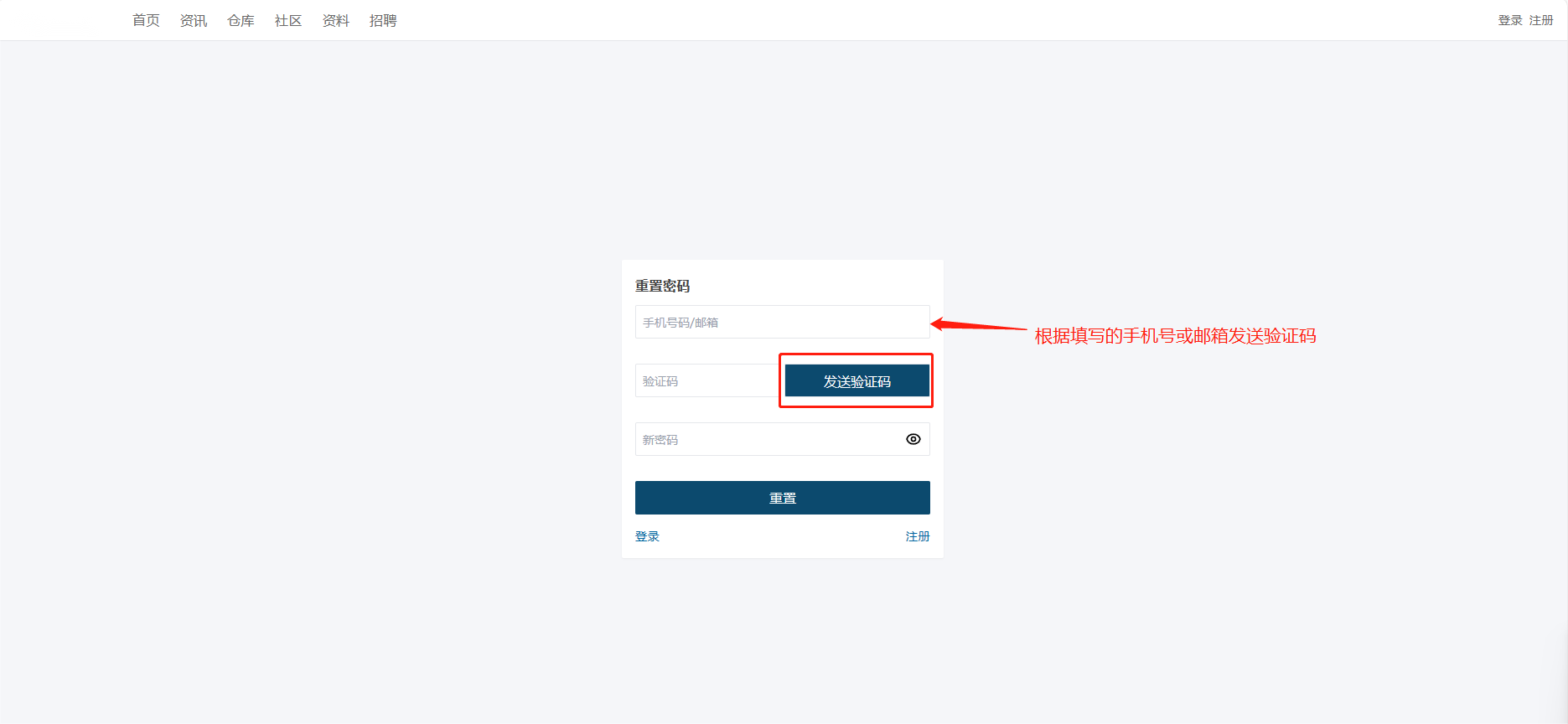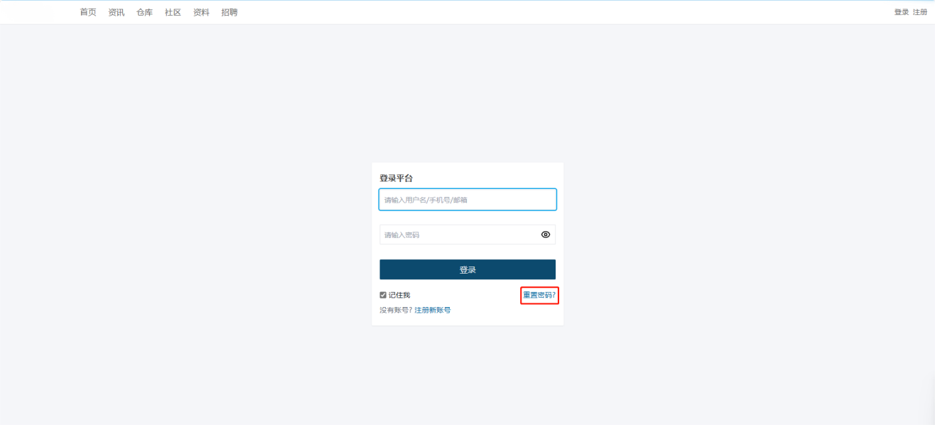 - 用户进入登录界面,点击【重置密码】。