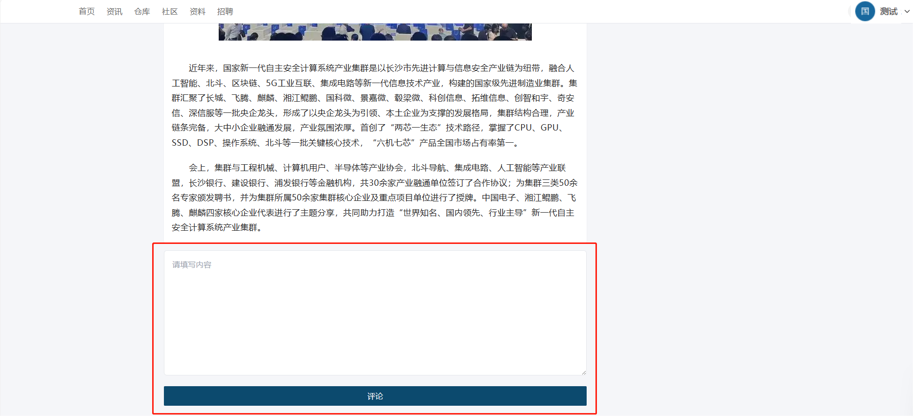 - 系统提供评论功能,用户可在评论框填写评论,点击【评论】,后台通过审核后展示评论内容。