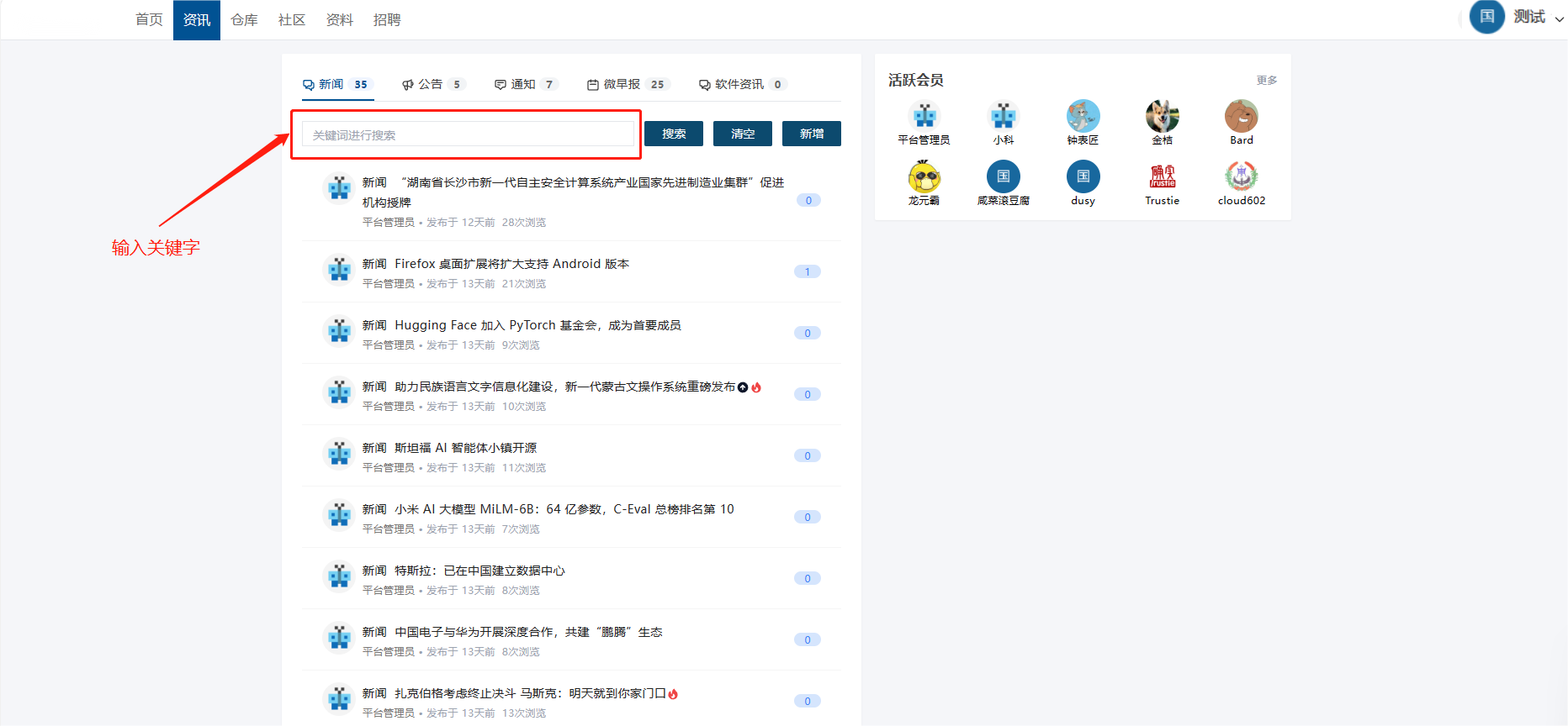 新闻搜索功能是一个允许用户在平台上搜索新闻文章的功能。用户可以使用关键词或短语来查找他们感兴趣的新闻文章,并根据不同的筛选条件来缩小搜索范围。下面描述该功能操作流程。