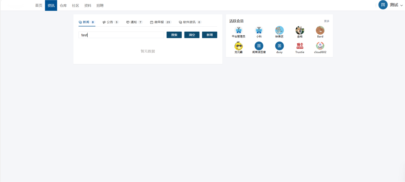- 用户【登录】后进入首页,点击【资讯下拉框】,点击【新闻】。