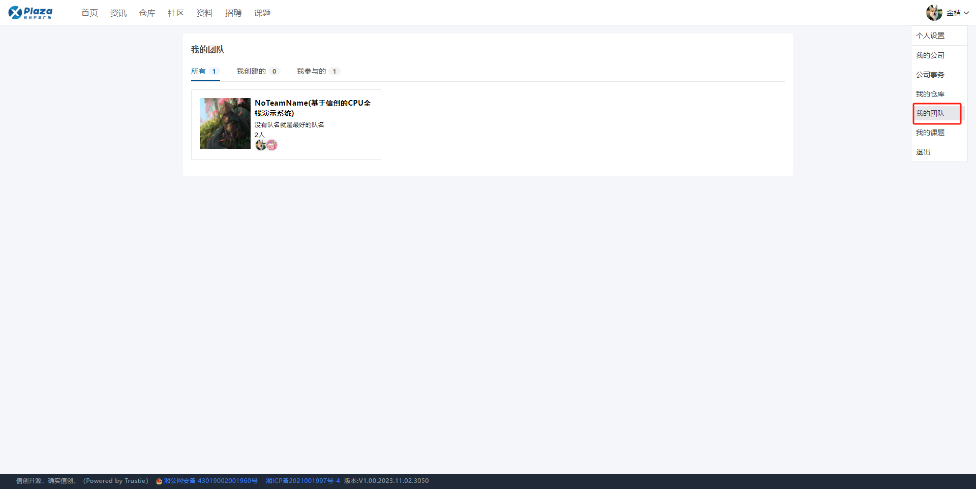 - 在用户报名后,可在我的团队页面看到自己创建与加入的所有团队