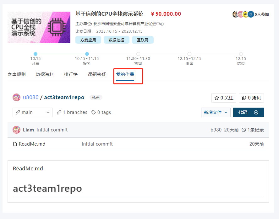 - 报名成功后,提交自己的作品或者查看自己的作品