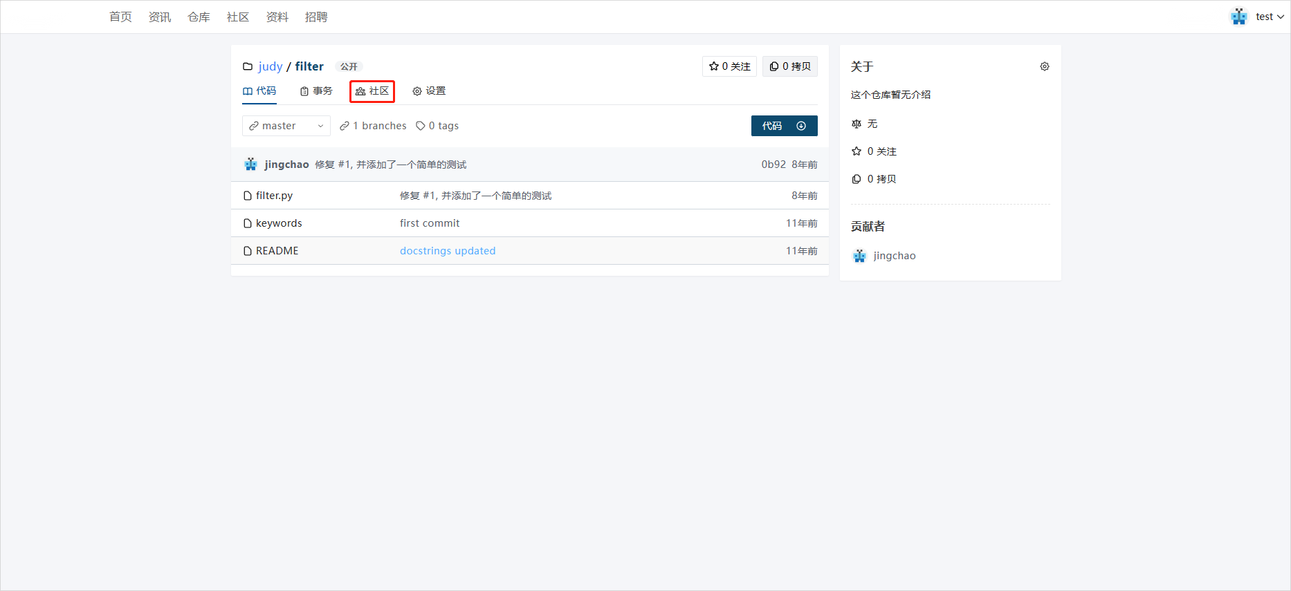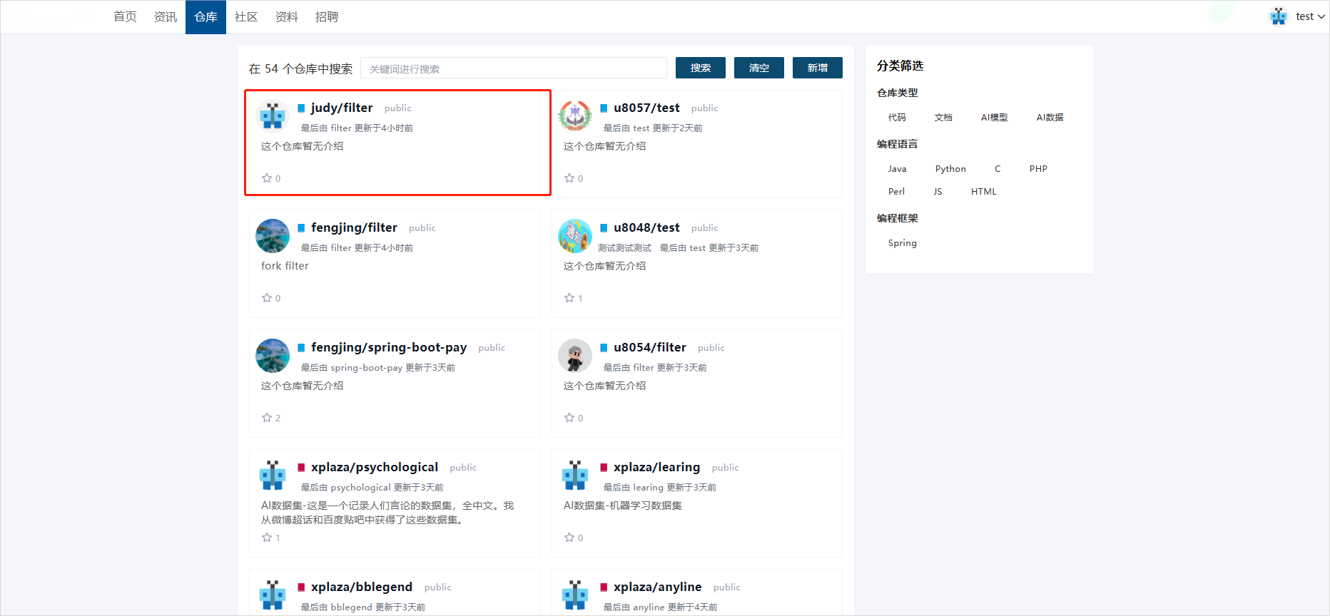 - 进入仓库社区界面。