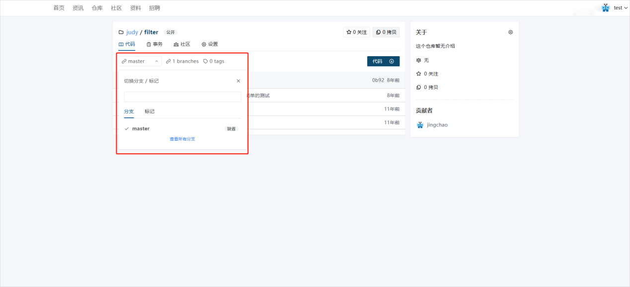 仓库分支功能是一种允许用户在代码仓库中创建和管理分支的功能。通过这个功能,用户可以在主分支的基础上创建新的分支,并在这些分支上进行开发和测试,而不影响主分支的稳定性。下面将以图文的形式描述该功能操作流程。