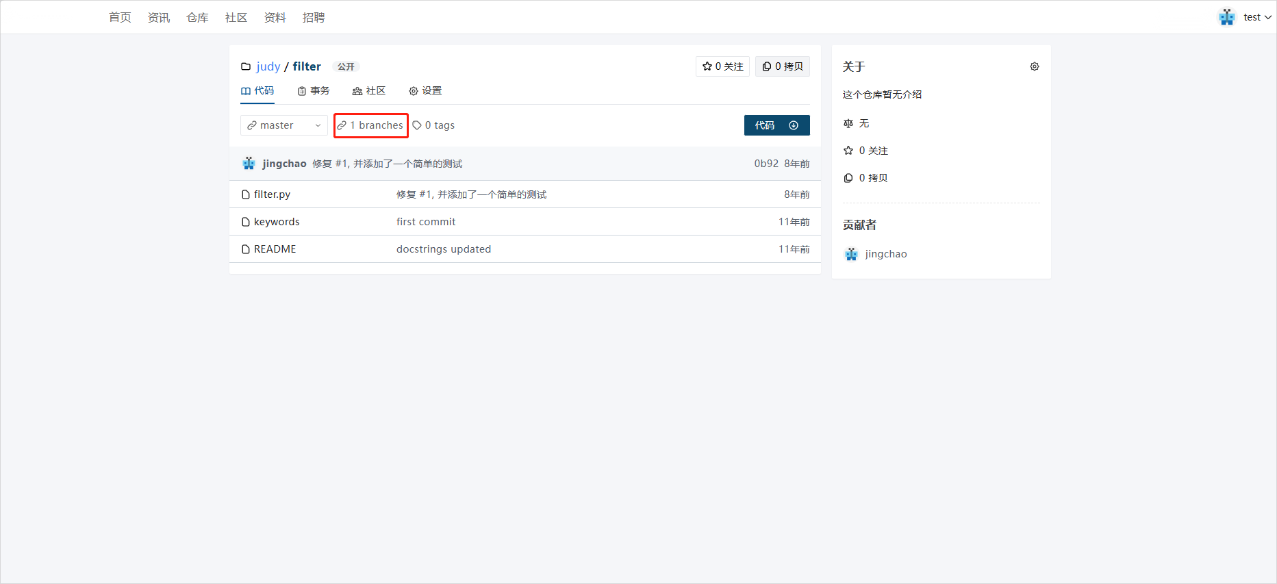 - 点击【branches】查看所有分支。